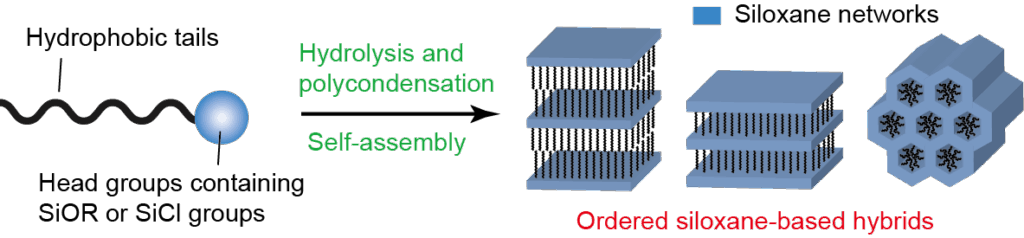 Designed Synthesis of Nanostructured Siloxane–Organic Hybrids from Amphiphilic Silicon-Based Precursors